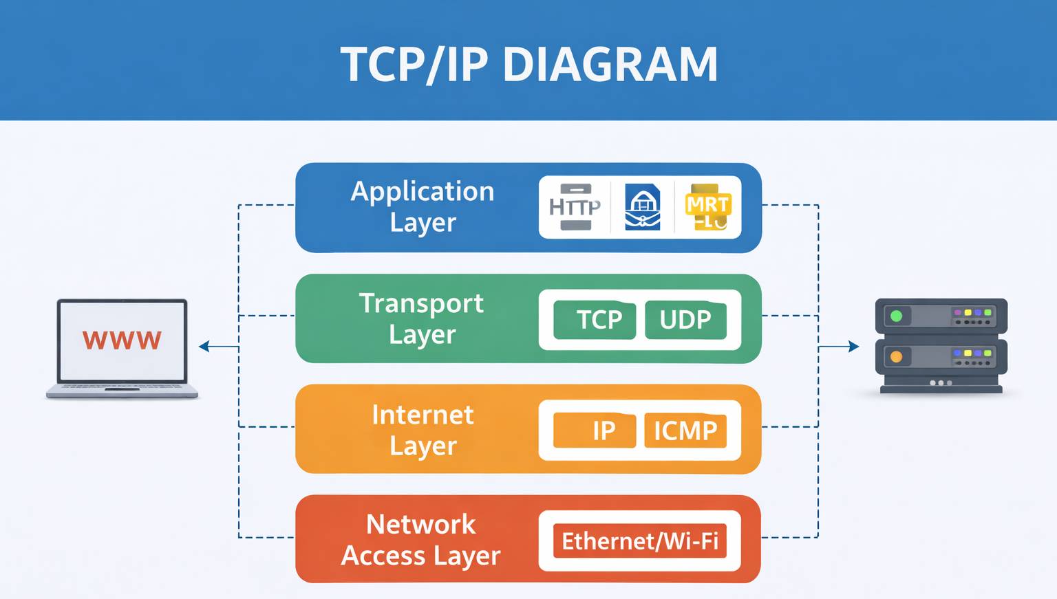 TCP/IP adalah protokol dasar internet. TCP memastikan data dikirim lengkap dan berurutan, sedangkan IP bertugas menentukan alamat tujuan data.