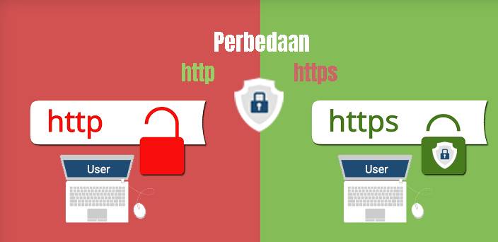 HTTP adalah protokol pertukaran data antara browser dan server. HTTPS adalah versi aman yang menggunakan enkripsi.